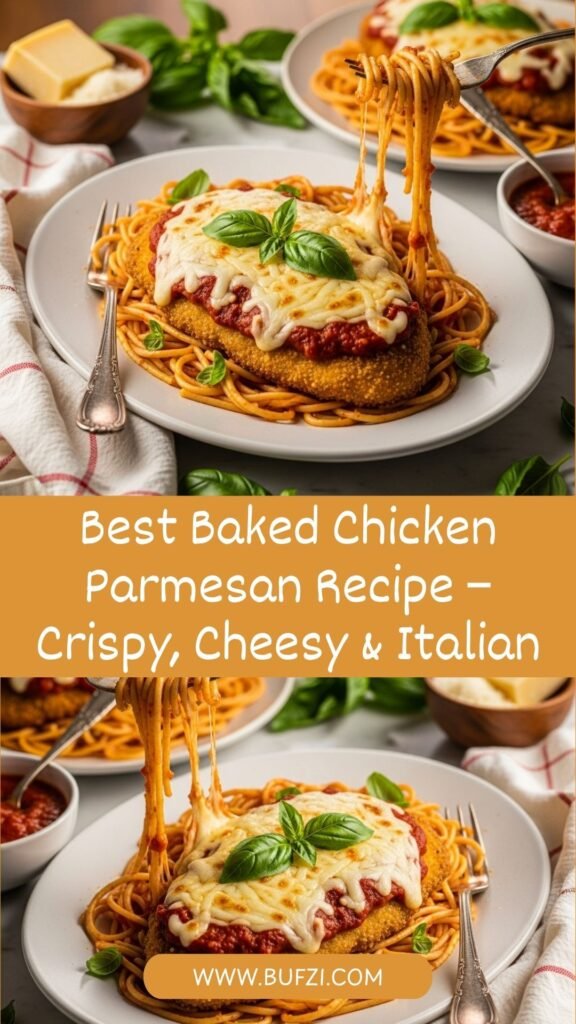 This baked chicken parmesan proves that you don’t need a deep fryer or restaurant kitchen to create incredibly crispy, cheesy, satisfying Italian comfort food at home. With its golden breaded coating, tender juicy chicken, tangy marinara sauce, and blanket of melted cheese, this recipe delivers everything you crave from the classic dish—but it’s healthier, easier, and less messy than traditional fried versions. It’s the kind of recipe that earns a permanent spot in your dinner rotation because it’s reliable, crowd-pleasing, and genuinely delicious every single time.