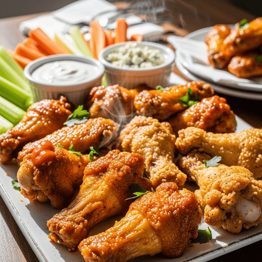 Beverages: Wings pair perfectly with ice-cold beer (lager, IPA, or pilsner), hard cider, iced tea, lemonade, or cold soda. For cocktails, try margaritas, Moscow mules, or whiskey sours.
