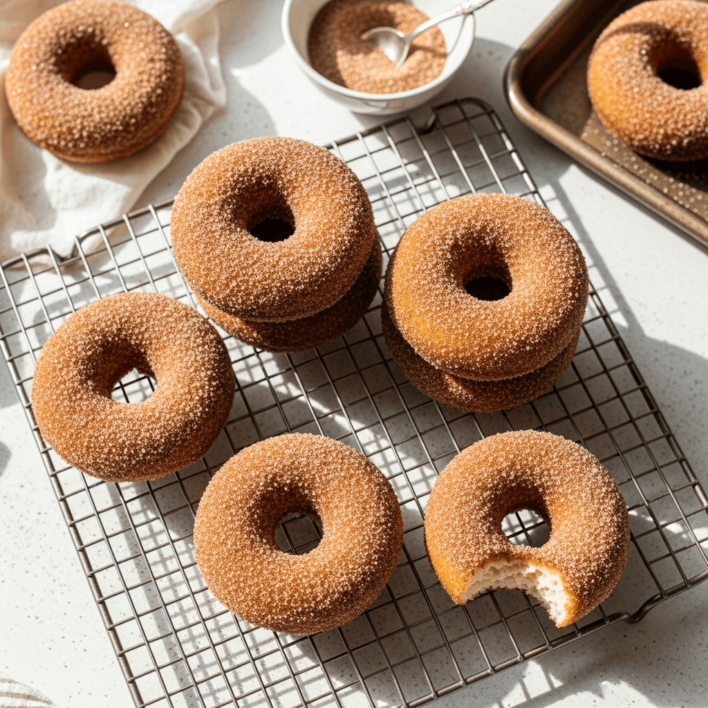 • Lighter Than Fried Donuts – While still wonderfully indulgent with that buttery cinnamon-sugar coating, baked donuts absorb significantly less fat than their fried counterparts, making them a slightly lighter option.