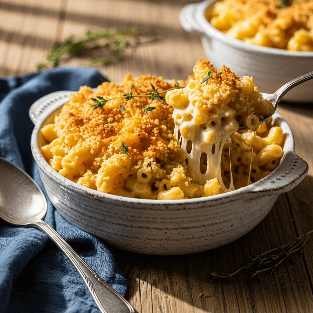 The ultimate creamy baked macaroni and cheese with a rich three-cheese sauce and golden buttery breadcrumb topping. This classic comfort food recipe delivers restaurant-quality results with straightforward homemade techniques.