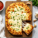 This homemade cheesy garlic bread is loaded with buttery garlic spread, melted mozzarella, and Parmesan cheese. It’s perfectly crispy on the outside, soft on the inside, and ready in just 25 minutes. Better than any restaurant version and endlessly customizable!