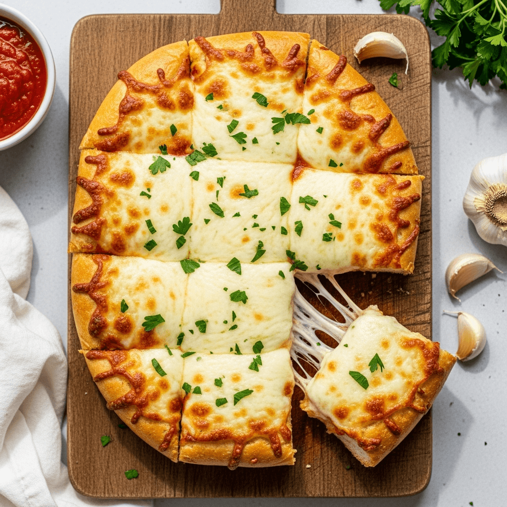 This isn’t your average garlic bread. We’re talking about a restaurant-quality cheesy garlic bread that features a perfect balance of crispy edges, soft buttery center, aromatic garlic, and gloriously melted cheese in every single bite. Once you make this homemade version, you’ll never want to buy the frozen stuff again.