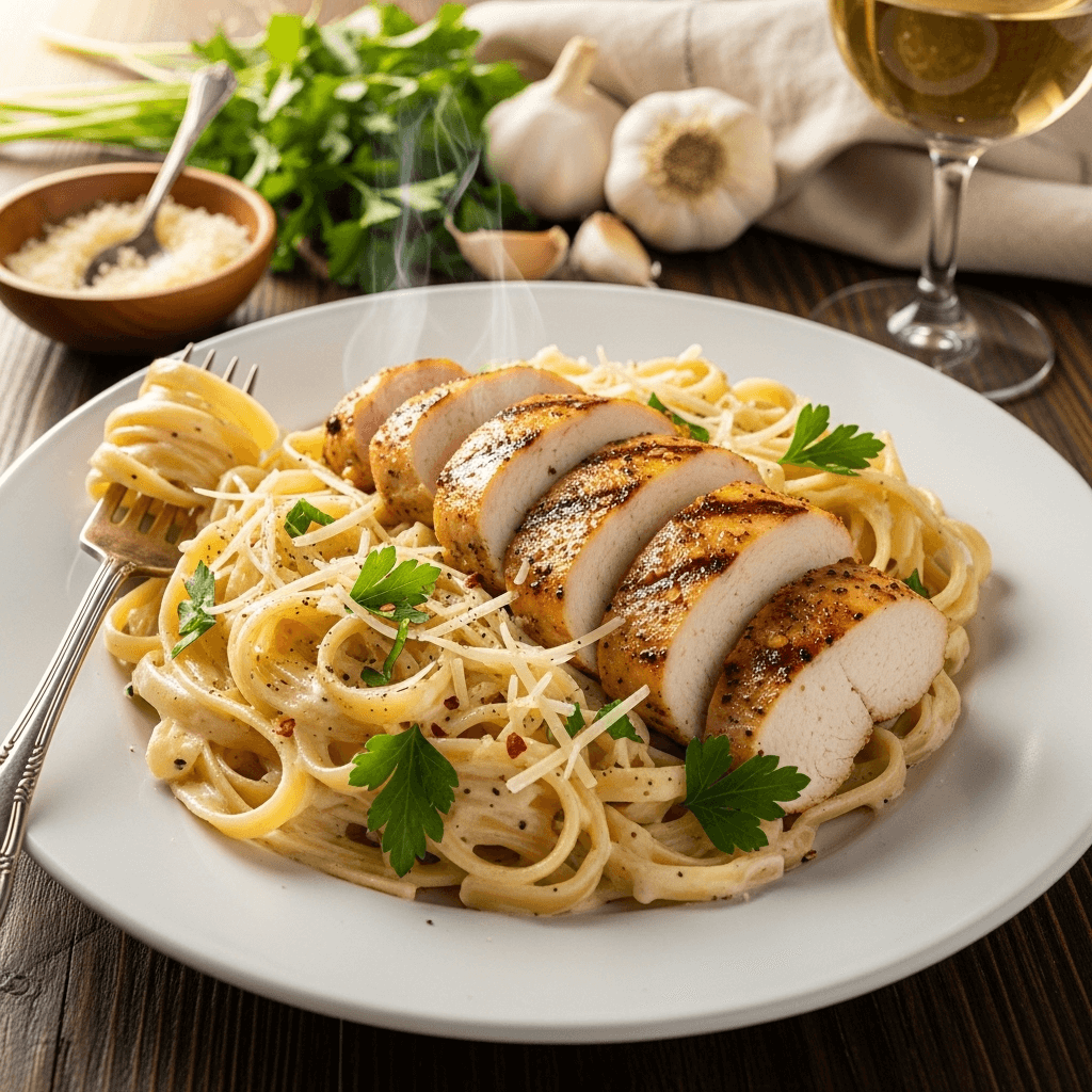 Tuscan Chicken Alfredo – Add sun-dried tomatoes, fresh spinach, and extra Italian herbs for a Tuscan-inspired variation with color and additional flavors.
