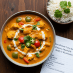 This easy chicken curry recipe is creamy, flavorful, and ready in just 30 minutes. Tender chicken simmers in a rich tomato-coconut sauce with aromatic spices for a restaurant-quality meal that’s perfect for weeknight dinners. Serve over basmati rice with naan bread for a complete, satisfying meal.