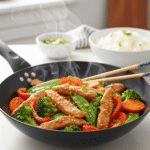 Can I make chicken stir fry without a wok? Absolutely! A large skillet (12-14 inches) works perfectly as an alternative. The technique remains the same – high heat, constant stirring, quick cooking. A skillet doesn’t conduct heat quite as evenly as a wok, but you’ll achieve excellent results. Flat-bottomed skillets work better than sloped ones for stir frying.