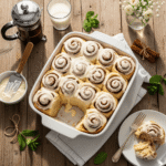 Party Presentation: For gatherings, place warm cinnamon rolls on a beautiful serving platter or wooden board, drizzle with extra frosting, garnish with a sprig of fresh mint, and let guests serve themselves. Have small plates, forks, and plenty of napkins available!