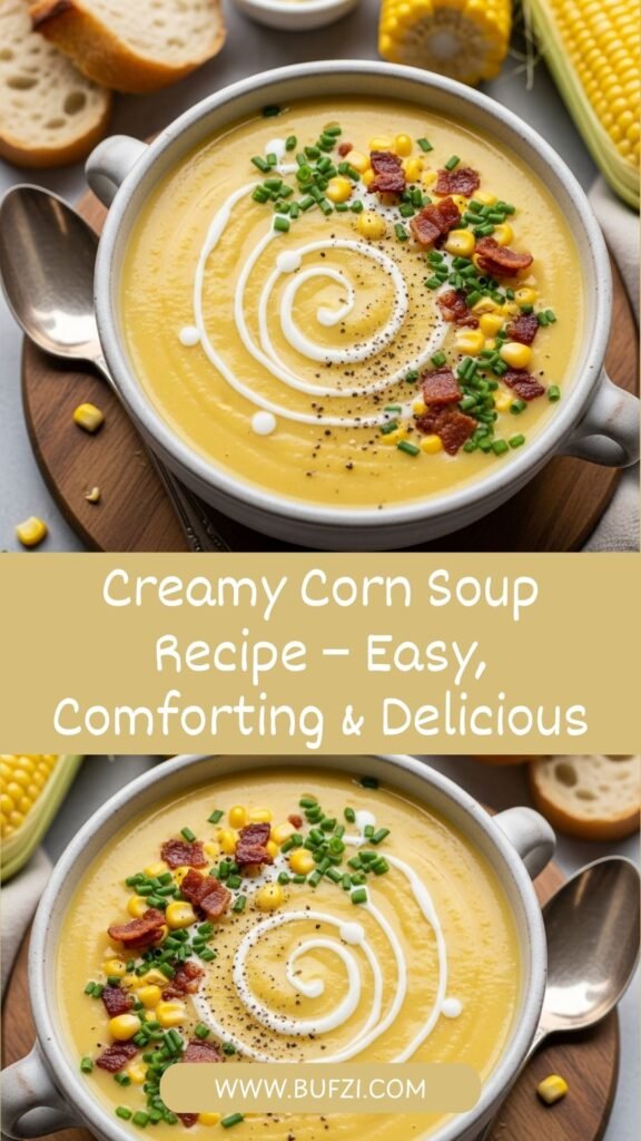 Have you tried this creamy corn soup recipe? I’d love to hear how it turned out! Drop a comment below telling me what you thought, what garnishes you loved, or what variations you tried. And don’t forget to pin this recipe to your Pinterest boards—you’ll want to make this comforting soup again and again! Happy cooking!