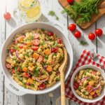 This classic creamy pasta salad features tender rotini pasta tossed with crisp vegetables, cheddar cheese, and a rich, tangy homemade dressing. Perfect for potlucks, BBQs, and meal prep, this crowd-pleasing side dish can be made ahead and stays fresh for days.