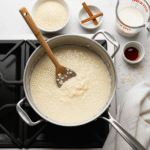 White Rice – The foundation of your pudding. Medium-grain white rice (like Calrose) or short-grain rice works best because they’re starchy and create a creamy texture. Long-grain rice like basmati or jasmine can work but won’t be quite as creamy. Arborio rice (risotto rice) makes exceptionally creamy pudding. Do NOT use instant or minute rice—they turn mushy. You can use leftover cooked white rice (see variations), though starting with uncooked rice gives you more control.