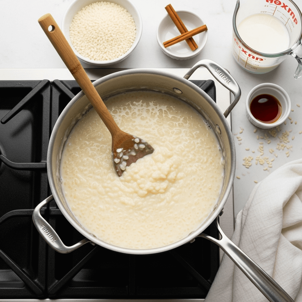 Cook low and slow – Patience creates creamier pudding. Low heat and gentle simmering allow rice to release maximum starch while preventing scorching. Rushing with high heat creates grainy, separated pudding.
