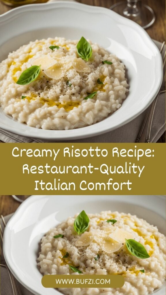 This classic creamy risotto recipe delivers authentic Italian restaurant-quality results with simple ingredients and straightforward technique. The Arborio rice becomes perfectly tender with a slight bite, suspended in a silky, luxurious sauce created by the rice’s natural starches. Ready in just 30 minutes with patient stirring and love.