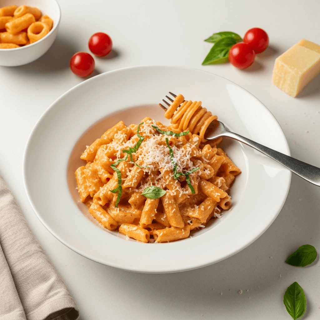 Creamy tomato sauce clings beautifully to tube-shaped pastas like penne, rigatoni, and ziti because the sauce gets inside the tubes. Short, twisted shapes like fusilli and rotini also catch lots of sauce in their crevices. Long pasta like fettuccine, linguine, or spaghetti works wonderfully too—the sauce coats each strand. Avoid very delicate pasta like angel hair which can get mushy, and avoid large shells or jumbo rigatoni which are better for stuffing. For this sauce, medium-sized shapes (penne, rigatoni, fusilli) are ideal.