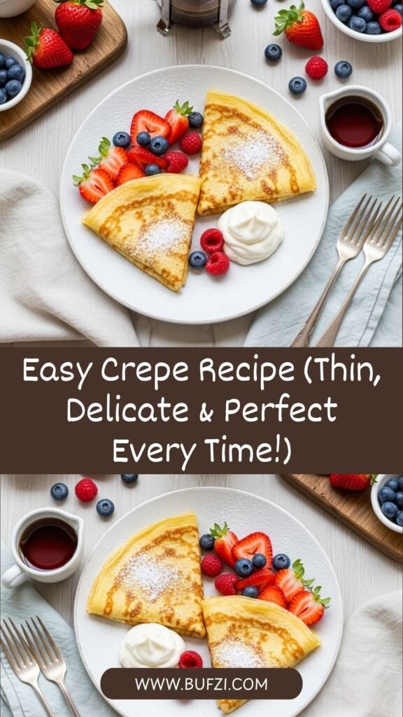 And there you have it—everything you need to make perfect, delicate, restaurant-quality crepes right in your own kitchen! This easy crepe recipe proves that elegant French cooking doesn’t have to be intimidating or complicated. With just a handful of simple ingredients, a basic pan, and a little practice, you can create something truly special that will impress your family and friends.