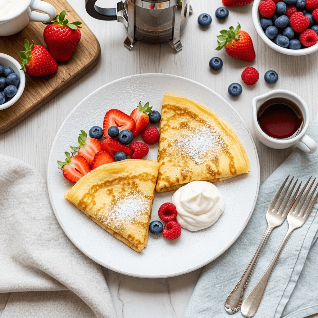 These homemade crepes work for virtually any occasion: leisurely weekend breakfasts, elegant brunch gatherings, Mother’s Day celebrations, Valentine’s Day morning treats, or even as a light dinner option when filled with savory ingredients. Fill them with Nutella and bananas, fresh berries and whipped cream, lemon and sugar, ham and cheese, or sautéed vegetables—the possibilities are truly endless.