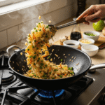 That distinctive flavor is called “wok hei” (breath of the wok) and comes from cooking over extremely high heat in a well-seasoned wok. At home, you can approximate this by: using the highest heat your stove allows, ensuring your wok or skillet is smoking hot before adding ingredients, not overcrowding the pan so ingredients fry rather than steam, and allowing the rice to develop a slight char on the bottom before tossing. A gas stove works better than electric for achieving wok hei because the flame can come up the sides of the wok. Adding a tiny drop of liquid smoke (use sparingly!) can also help recreate that flavor, though it’s not traditional.