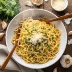 These easy garlic butter noodles feature tender pasta tossed in a rich, garlicky butter sauce with fresh parmesan and parsley. Ready in just 15 minutes with minimal ingredients, this simple recipe delivers maximum comfort and flavor. Perfect as a quick weeknight dinner or elegant side dish, these buttery noodles are foolproof, budget-friendly, and absolutely delicious!