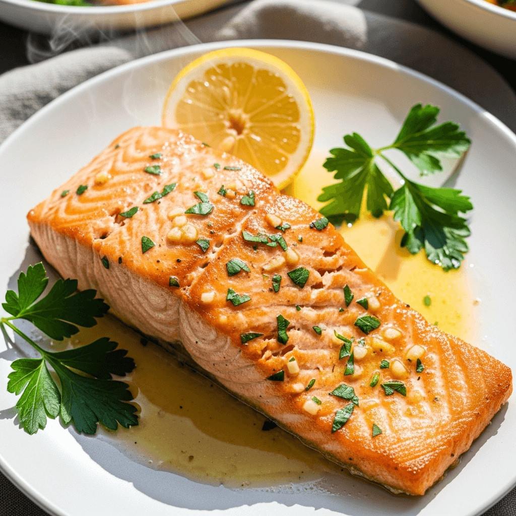 • Incredibly Flavorful – Rich garlic butter sauce elevates the salmon without overpowering it