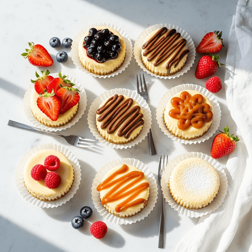 Berry Swirl Mini Cheesecakes: Drop small spoonfuls of berry jam (raspberry, blueberry, strawberry) onto the batter and swirl with a toothpick before baking for beautiful marbled effects.