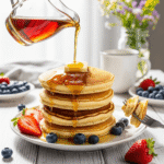 Pancake Bar Setup: For family gatherings or brunch parties, create a pancake bar with multiple toppings in small bowls. Include various syrups (maple, blueberry, strawberry), fresh fruits, nuts, chocolate chips, whipped cream, and sprinkles. Let everyone customize their own stack!