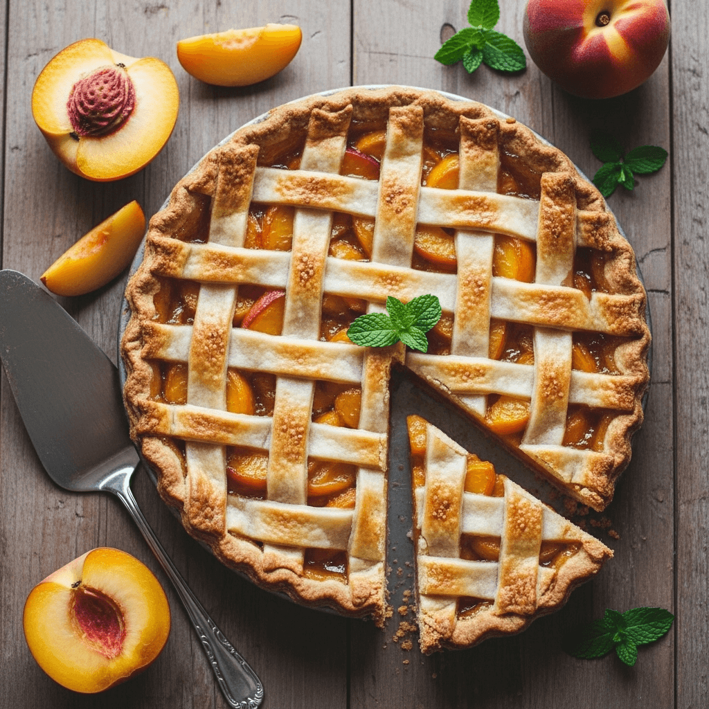 This classic homemade peach pie features a buttery, flaky crust filled with tender, juicy peaches sweetened with cinnamon and warm spices. Perfect for summer gatherings or any time you’re craving a slice of comfort!