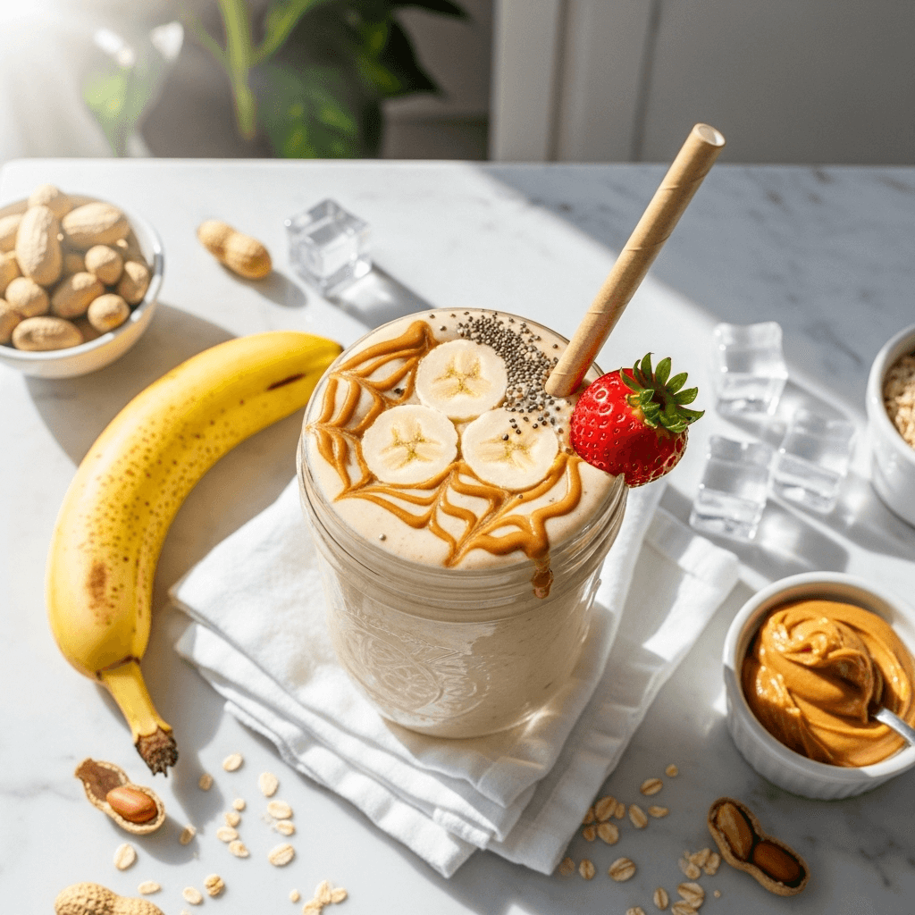 This creamy peanut butter smoothie is a protein-packed, naturally sweetened breakfast or snack that tastes like a milkshake but fuels your body with wholesome nutrition. Ready in just 5 minutes with simple pantry ingredients!