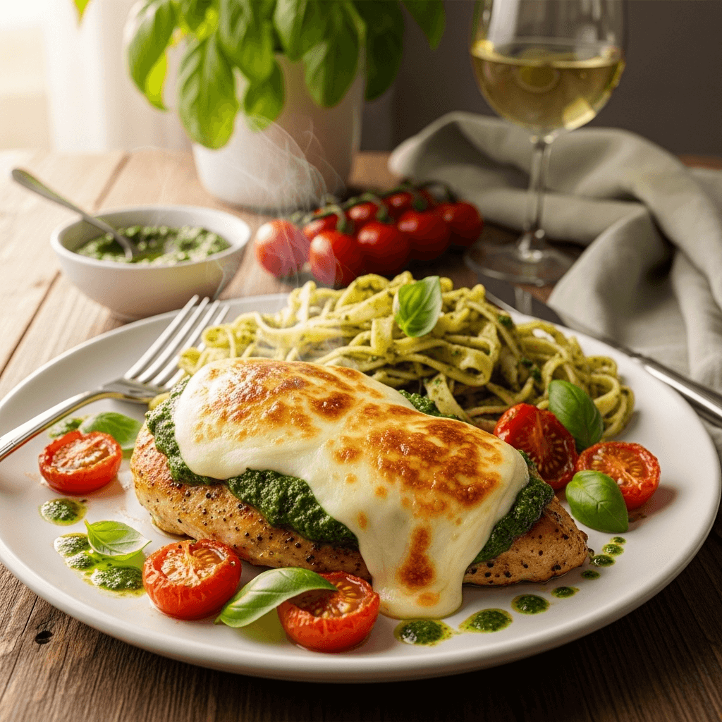 The marriage of pesto with chicken is actually an Italian-American innovation. While Italians traditionally serve pesto primarily with pasta, Italian immigrants and Italian-American chefs began experimenting with pesto as a versatile sauce for proteins. As pesto gained popularity in America during the 1980s and 90s (thanks to the growth of Italian restaurants and the fresh food movement), creative home cooks started using it in new ways.