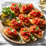 I’d absolutely love to hear about your tomato bruschetta adventures! Are you a traditional basil lover or do you enjoy creative variations? What occasions do you love serving bruschetta for? What toppings or additions do you prefer? Drop a comment below and let me know how your cooking turned out and what made this recipe special. And if you loved this recipe, please save it to your favorite Pinterest board so you can find it easily whenever you need an elegant, fresh appetizer, and share it with friends and family who deserve to experience authentic, restaurant-quality tomato bruschetta!